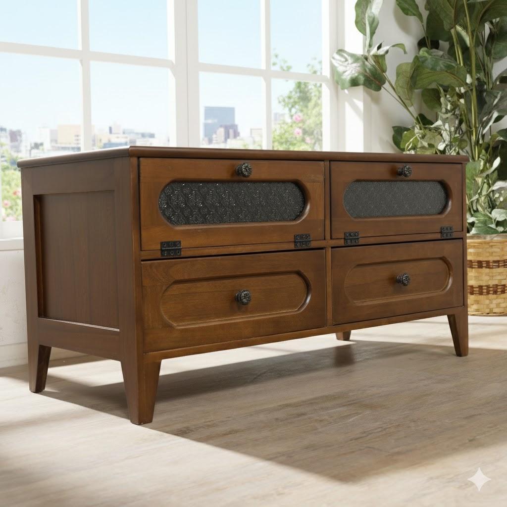 マルニ木工 テレビボード テレビ台入荷しました。\r\r\r\r■ブランド:マルニ木工\r\r■定価:約42万\r\r■サイズ:幅1630x奥行450x高さ605(㎜) \r\r上段::幅510x奥行365x高さ140(㎜)×2\r\r引き出し上段::幅165x奥行310x高さ140(㎜)×2\r 下段:幅165x奥行310x高さ240(㎜) ×2\r\rガラス戸:幅520x奥行390x高さ260(㎜) ×2\r(板 各1枚ずつ ダボ間隔25㎜)\r\r※若干の誤差はご了承下さい。\r\r\r■コンディション\rヴィンテージの品になります。\r経年や使用に伴うキズやシミございますが、美観を著しく損ねる致命的なダメージになるようなものは見当たりませんでした。\r\r※あくまでコンディションはスタッフの主観になりユーズドの品になりますので完璧を求める方はご購入をご遠慮下さい\r\r\r■配送条件\rコメント欄にてご確認下さいませ。\r梱包発送たのメル便(300サイズ ¥12,000 )をお品物代にプラスし再出品致しますので、コメントお願い致します。\r\r\r■マルニ木工\r国産木工家具におけるトップブランドのひとつである「maruni(マルニ木工)」100年先も定番として愛される家具をつくり続ける。創業者である山中武夫は、広島県の宮島で木を用いた伝統工芸が、まるで手品のように自在に形を変えていく「木の不思議さ」に魅了され、その後、当時としては技術難度の高い「木材の曲げ技術」を確立させました。それまで手工業の域を出なかった日本の家具工業に対して、「工芸の工業化」をモットーに「職人の手によらない分業による家具の工業生産」を目指しました。\r\r\r高級感あふれるマルニ木工のテレビボード。\r1つ置くだけで一気にホテルの様な空間を演出できます。\r色味もかっこいいのでこの機会に是非ご活用下さい。\r\r\r#ヴィンテージ #maruni #マルニ木工 #テレビボード #テレビ台 #ホテルライク #木製 \r#ネバーランド新着\r#ネバーランド東名川崎| カテゴリー: | ハンドメイド・手芸>>>家具>>>テレビ台・テレビボード |